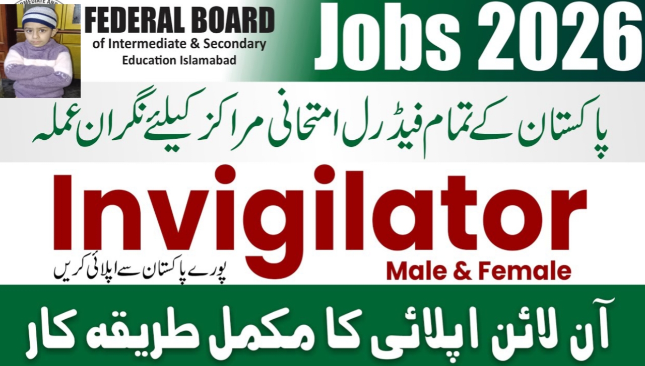 The Federal Board of Intermediate & Secondary Education (FBISE), Islamabad, is inviting applications from qualified individuals to serve as Invigilators for the upcoming Secondary School Certificate (SSC) and Higher Secondary School Certificate (HSSC) Annual Examinations in 2026.